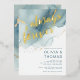 Invitación Con Relieve Metalizado Boda de playa de oro azul para siempre
