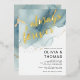 Una plantilla de invitación a bodas con temática playera que presenta una escena acuarela abstracta pintada de una playa y olas con efecto colgante de tinta dorada (¡el oro es un efecto digital, no un Relieve metalizado real!) y caligrafía moderna con el título "siempre y para siempre" en Relieve metalizado de oro real. Elegante y elegante, sencillo y moderno, es una opción agradable para una boda playera en cualquier temporada, para una pareja moderna.
