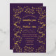 Morada de ciruela, Respiración del bebé, oro rosa, Relieve metalizado de oro, floral, invitación de boda de Relieve metalizado real. Hermosa, elegante, moderna invitación a la boda.