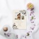 Anuncia tu unión en un estilo atemporal con nuestras invitaciones de boda inspiradas en lo vintage, una fusión de elegancia y encanto boho moderno. Elaboradas en un lujoso crema marfil, cada invitación presenta acentos de encaje floral con lámina de oro real, evocando un sentido de romance vintage. La simple caligrafía añade un aire de sofisticación, mientras que una foto de la pareja añade un toque personal, capturando la esencia de la historia de su amor. Invite a sus invitados a compartir su alegría con estas exquisitas invitaciones que marcan el tono para una celebración inolvidable.