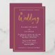 Estas invitaciones de boda elegantes y modernas presentan un hermoso diseño de lámina dorada real sobre un fondo fucsia. Los detalles de la boda están impresos en una fuente sofisticada y acentuados con un borde dorado. "La boda de" está impresa en una hermosa tipografía script.