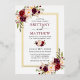 Invitación Con Relieve Metalizado Boda floral acuarela Borgoña 2 marco dorado