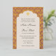 Celebra el florecimiento de tu historia de amor con una invitación tan elegante como tu unión. Con un cautivador diseño artístico deco floral de loto en un brillante Relieve metalizado de oro falso, esta invitación simboliza la pureza y el despertar espiritual en las tradiciones hindúes. Personalice los detalles de su día especial, incluidos los nombres de la novia y del novio (los nombres de los padres son opcionales), la fecha, la hora, la ubicación del lugar y los detalles de la recepción. Elija entre una selección de colores cautivadores -verde azulado, azul, ciruela, rojo óxido, gris carbón y blanco- para complementar perfectamente su tema boda. Estas exquisitas invitaciones no sólo informarán a sus invitados, sino que también prepararán el escenario para una celebración eterna e inolvidable.