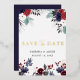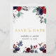 Invitación Con Relieve Metalizado Boda floral azul marino borgoña Save The Date