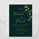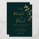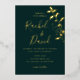Invitación Con Relieve Metalizado Boda floral de oro verde esmeralda