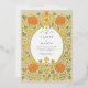 Con esta sorprendente invitación, inspirada en el icónico movimiento de Artes y Artesanías, le ofrecemos un tono maravillosamente artístico y cálido a su boda. El diseño tiene un borde atrevido y simétrico de flores naranjas estilizadas, elegantemente entrelazadas con viñas oscuras y giratorias y hojas en forma de corazón en un sofisticado verde oliva. La rica paleta de colores tierra de cálido naranja, verde sabio y carbón vegetal sobre un fondo beige cremoso hace de esto una elección excepcional para un boda de otoño o para cualquier pareja que aprecie un diseño único y vintage. Un marco ovalado clásico muestra tus detalles personalizados con una fuente atemporal y elegante. Esta invitación distintiva es perfecta para una celebración memorable inspirada en el arte.