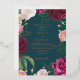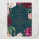 ¿Estás planeando un boda romántico, rústico, rural o de granero? El fondo verde esmeralda te da detalles en oro y flores en rojo y rosa. Las flores blancas de color de agua con vegetación floral le confieren un brillo especial a tus invitaciones de boda
