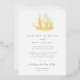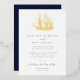 Otra invitación a la boda de JessicaAmber. Esta tarjeta clásica incluye un ilustracion detallado de un barco de vela frigata, que se puede reemplazar con una imagen del barco en el que se casará (se prefiere fondo blanco o transparente). El barco se representará en Relieve metalizado de oro. Las elegantes letras de color azul oscuro muestran los nombres de los novios y novios, así como los detalles del boda, incluyendo la ubicación, fecha y hora. Busque en mi colección la suite FRIGATE correspondiente. ⚠ Si desea editar la caligrafía y utilizar caracteres especiales, copiarla y pegarla desde esta página: bit.ly/Emeline-Script ⚠・・・ Para más suites bodas, visite mi tienda Zazzle.com/DriftwoodAndDreams ・・・ Para órdenes personalizados, envíeme un mensaje en Zazzle