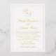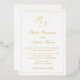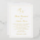 Invitación tradicional a la boda con un diseño sencillo y clásico con su monograma inicial y sus nombres en una caligrafía elegante dentro de un borde delgado. Todos los elementos de diseño están impresos en Relieve metalizado oro real. Esta invitación de bodas de lujo con un diseño atemporal es perfecta para un boda formal.