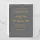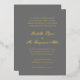 Invitaciones tradicionales de boda con un diseño sencillo y atemporal con el nombre de la novia y el novio en una caligrafía elegante. Todo el texto del frente está en Relieve metalizado oro real sobre un fondo gris medio. Este clásico Relieve metalizado dorado de lujo Wedding Invitation es perfecto para un boda formal.