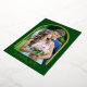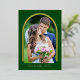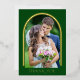 Una tarjeta de agradecimiento boda moderna y sencilla que incluye una foto abovedada y acentos de verdadero Relieve metalizado de oro. El reverso ofrece una segunda foto rectangular y texto personalizado para un mensaje personal. El fondo delantero es verde esmeralda.