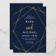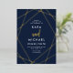 Invitación Con Relieve Metalizado Boda Geométrico Elegante de Oro y Medianoche Azul