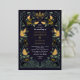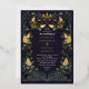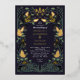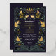 Elegante, caprichoso y gótico diseño boda perfecto para una celebración con temática forestal encantada o para un romanticismo gótico oscuro. Este diseño presenta unos cavernas enmarcados en un marco de espinas verdes, bayas, lilatas y acentos dorados sobre un fondo morado oscuro. Artículos coincidentes en nuestra tienda para un tema fiesta completo.