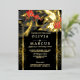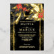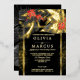 Invitación Con Relieve Metalizado Boda | Helecho Tropical Negro Plumeria Carmesí