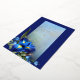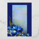 Bonita invitación a una boda azul oscuro con un área de texto azul más clara y gráficos de un gran iris azul, en la parte inferior. Personalice el texto del Relieve metalizado para la celebración de su boda.