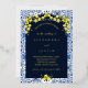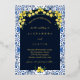 Invitación Con Relieve Metalizado Boda mediterráneo italiano Blue Tile Lemon