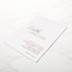 Invitación de boda con lámina de oro rosa moderno con un diseño simple y minimalista con el nombre de la novia en una elegante letra cursiva y el nombre del novio en una tipografía sans serif contemporánea. Abajo en la esquina inferior derecha están los detalles de su evento en un diseño minimalista. Todo el texto en la parte frontal está impreso en lámina real.