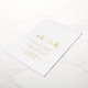 Invitación nupcial moderna con un diseño sencillo con sus nombres en una tipografía de escritura elegante y sus detalles del evento en una fuente minimalista sans serif. Todo el texto del frente está en Relieve metalizado oro real. Esta invitación a la boda de moda funciona bien con cualquier estilo de boda.