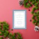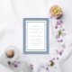 Invitación de boda elegante en azul polvoriento y papel de plata. Nombres de la pareja en papel de plata y en el medio.