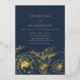 Invitación Con Relieve Metalizado Boda moderno de botánicos de oro azul de la Marina