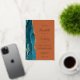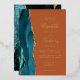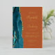 El borde izquierdo de esta elegante y moderna invitación a la boda incluye un verde azulado borde de ágata azul azul con falso purpurina de oro. El texto del personalizable combina la escritura a mano, el copperplate y los tipos de letra cursiva en Relieve metalizado oro real sobre un naranja quemado o fondo de roya. El reverso presenta un diseño de agate verde azulado y dorado a juego.