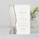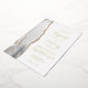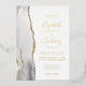 La arista izquierda de esta elegante y moderna invitación a la boda se caracteriza por una pasarela de acuarela gris y blanca recortada con un falso purpurina de oro. El texto del personalizable combina la escritura a mano, la copperplate y las letras cursivas en Relieve metalizado oro real sobre un fondo blanco. El reverso presenta un diseño de agate gris, blanco y dorado a juego.