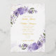Hermosa invitación a la boda con diseño floral púrpura y escritura y desempolvado de Relieves metalizados. Espero que tengas un hermoso día de bodas.