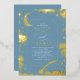 Esta encantadora invitación a las bodas sumerge a los huéspedes en un impresionante paisaje nocturno, lleno de magia y romanticismo. Una luna creciente brillante, una estrella fugaz radiante y constelaciones distantes, todas delicadamente detalladas en un lujoso Relieve metalizado de oro real, crean una escena directamente del cielo. Envuelto en un suave y polvoriento fondo azul, este diseño celeste susurra la sincera promesa, "Te quiero a la luna y atrás". Esta invitación no sólo refleja tu estilo único y tema boda, sino que ofrece un avance mágico del día en que dos almas se reúnen en el baile atemporal del amor. El rico paisaje nocturno de Relieve metalizado oro real se convierte en un símbolo de tu celebración, contando intrincadamente la historia de tu amor dentro de su brillo. Esta invitación seguramente se convertirá en un querido aguijón, capturando perfectamente la maravilla y el encanto de su próxima unión.