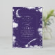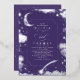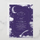 Noche estrellada morada romántica y invitación a la boda de luna creciente