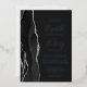 El borde izquierdo de esta elegante y moderna invitación a la boda incluye un borde de ágata color de agua negro recortado con un falso purpurina de plata. El texto del personalizable combina escritura a mano, copperplate y cursiva en Relieve metalizado plateado real sobre un fondo fuera de negro. El reverso presenta un diseño de ágata negro y plateado a juego.