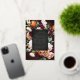 Audaz eucalipto naranja de flores silvestres quemadas, moderna invitación al Relieve metalizado de boda de modas oscuras.