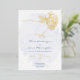 BODA | Simple y elegante, salpicadura de acuarela en azul polvoriento destaca la rosa dorada con lámina de oro - texto minimalista simple combinado con caligrafía dorada. La elección de la comida es personalizable. El reverso es azul polvoriento. Esta es parte de una colección de suite de boda coordinada por BarefootBride™