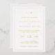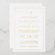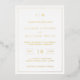 Invitación a la boda simple con un diseño moderno y elegante con su monograma de dos letras en la parte superior, un diseño de fecha audaz y sus detalles rodeados de un borde delgado. Todos los elementos de diseño se imprimen con Relieve metalizado oro real. Una moda y elegante Invitación a la Boda que es ideal para una pareja minimalista.