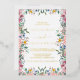 Perfecto para una boda de otoño, esta elegante invitación todo en uno muestra un diseño de boho vintage con flores de acuarela rústicas en cálidos terracota, cobre, naranja quemado, melocotón, rosa rubor y crema. Ofrece un Relieve metalizado dorado de lujo en la parte delantera y combina encanto intemporal con comodidades modernas. Guarde el papel incluyendo los detalles del boda en la parte posterior y, opcionalmente, agregue información de RSVP para respuestas electrónicas.