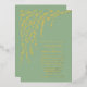 Invitación a la boda de Relieve metalizado de oro hecho en un verde sabio claro con ramas de sauce de Relieve metalizado dorado y texto personalizado. Personalice el texto del Relieve metalizado para adaptarlo a sus necesidades bodas.