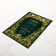 Acepte la opulencia de la era otomana con esta cautivadora invitación a la boda, rica en los tonos reales de verde esmeralda y oro. El diseño se inspira en el Art Nouveau y en el suntuoso arte de la decoración turca, creando un aura de sofisticación y romanticismo intemporal. Los acentos de Relieve metalizado dorado brillan sobre el fondo verde profundo, destacando la intrincada floración y el enrollamiento que adornan las fronteras. Un elemento central del diseño es el elegante guión que anuncia la unión de la pareja, flanqueado por la caligrafía islámica tradicional, dando un sentido de herencia y celebración. Esta invitación es un verdadero testimonio de un amor que es tan perdurable como las formas clásicas de arte que honra.