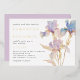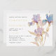 Esta elegante invitación a la boda es perfecta para bodas de primavera y verano. El diseño se compone de iris acuáticos en tonos lilas y azul peringuil. Los toques sutiles de oro agregan un elemento mágico y brillante.