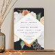 La elegante invitación al brunch floral de la ducha de novia incluye un marco en forma de diamante con flores acuáticas y follaje en tonos boho desérticos de melocotón, blanco, marfil y verde salado, y acabado con un adorno de Relieve metalizado dorado. Personaliza con tus detalles del brunch de novia.