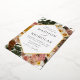 Elegantes invitaciones de bodas de otoño con detalles bodas enclavados en un marco geométrico de Relieve metalizado dorado rodeado de flores acuarelas y vegetación con colores otoñales mudos de marfil, naranja, oro de mostaza, verde oliva, rosa polvoriento y marrón. Las invitaciones de casamiento floral de otoño se invitan a revertir para mostrar un rico fondo de color verde oliva. Diseñado para coordinar con nuestra colección Boho Autumn Floral boda.