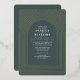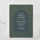 Un diseño único con múltiples y delicadas líneas de arco que rodean la información de la invitación a la boda en Relieve metalizado dorado estampado, sobre un fondo verde oscuro
