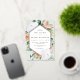 La elegante invitación a la ducha de bebé, neutra y floral, presenta un marco hexagonal alargado de flores acuarelas y follaje en tonos boho desérticos de melocotón, blanco, marfil y verde sabio, y acabado con guarnecido dorado de Relieve metalizado. Personalice los detalles de la ducha de bebé con letras modernas.