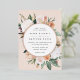 Elegante invitación a la boda floral con detalles bodas en letras modernas, enmarcada en un marco redondo de flores de color pastel y follaje botánico en tonos tierra inspirados en el desierto, de melocotón, verde salvia, blanco y marfil. El guarnecido Rosa de Relieve metalizado dorado completa el estilo de un toque de lujo.