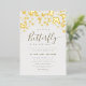 Una moderna, elegante y romántica ducha para bebés con un tema de mariposa con un marco de boho pintado a mano, mariposas acuarelas en oro y una salpicadura de oro en Relieve metalizado de oro real. Romántico, elegante, elegante y moda, seducirá a la mamá moderna a ser la que quiera un ambiente refinado pero relajado, quizás en el campo, en un jardín u otro lugar donde la naturaleza (¡o simplemente mariposas!) juegue un papel importante.