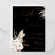 Invitación Con Relieve Metalizado Boho White Floral Script Boda negro Rosa oro