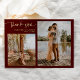 Invitación Con Relieve Metalizado Borgoña guión 5 fotos gracias boda