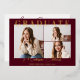 Una moderna y elegante invitación a la fiesta de graduación de Relieve metalizado de oro de Borgoña. Este fiesta de grado único invita a que se muestren un tipo de letra y un espacio de escritura a la moda para añadir 3 fotos. LA FOTO DE LA MUESTRA NO ESTÁ INCLUIDA. SUSTITÚYASE CON SU PROPIA FOTO ANTES DE PEDIRLA.