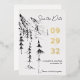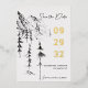 Esta elegante y rústica boda Save the Date es perfecta para cualquier destino o boda al aire libre y cuenta con un elegante diseño de sketch de montaña y bosque en blanco y negro, complementado con tipografía de escritura a mano y Relieve metalizado de oro real para darle un toque elegante a su suite boda.