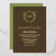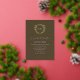 Wedding collection with earth tones of green and dark brown. A gold geometric monogram crest surrounded by botanical leaves.