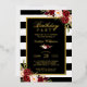 Invitación Con Relieve Metalizado Burgundy Floral Black White Stripes Partido de cum