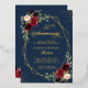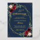 Personalice esta "Invitación de Hoja de Metal Real Azul Marino Floral de Borgoña Geométrica" para llevar su invitación de aniversario de bodas al siguiente nivel. Todo el texto y el marco están hechos con Hoja Metálica Real y es perfecto para agregar un toque de lujo.